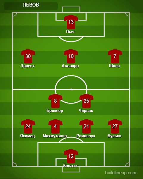 «Львов»: Костык, Романчук, Махмутович, Якимец, Ныч (Ренан, 58), Брикнер (Довгый, 63), Бусько, Эрнест, Чирьяк (Политыло, 58), Альваро (Хамелюк, 74), Шина (Грисьо, 58).