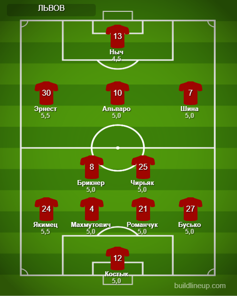 Замены«Львова»:Ренан - 4,5, Политыло - 4,5, Грисьо - 4,5, Довгый - 6,0, Хамелюк - 5,0.
