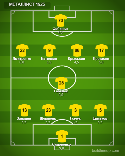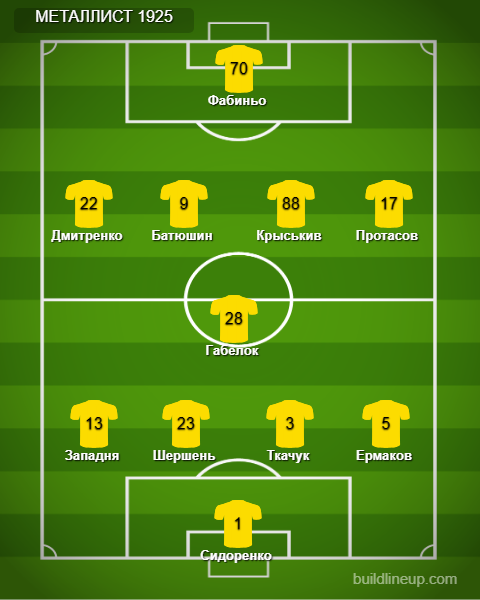 «Металлист 1925»: Сидоренко, Ермаков, Ткачук, Шершень, Западня (Ченбай, 83), Габелок (Д. Кравченко, 83), Протасов (Савин, 70), Батюшин (Задерака, 64), Фабиньо, Дмитренко (Ременюк, 64), Крыськив.