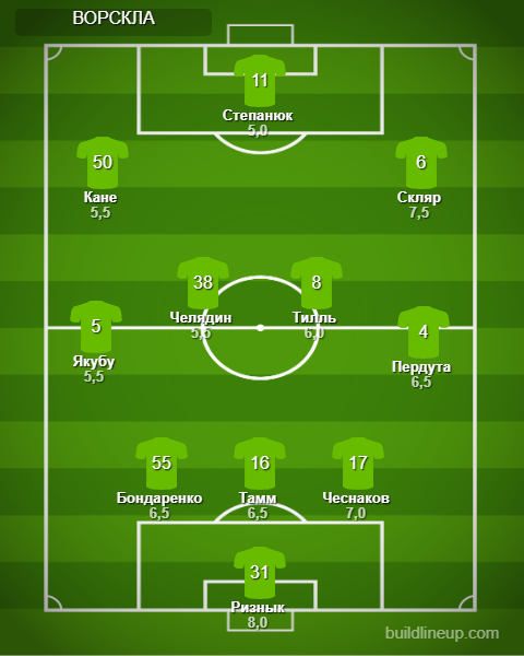Замены «Ворсклы»: Вакула - 5,5, Нестеренко - б/о, Кушниренко - б/о, Пешич - б/о, Яворский - б/о.